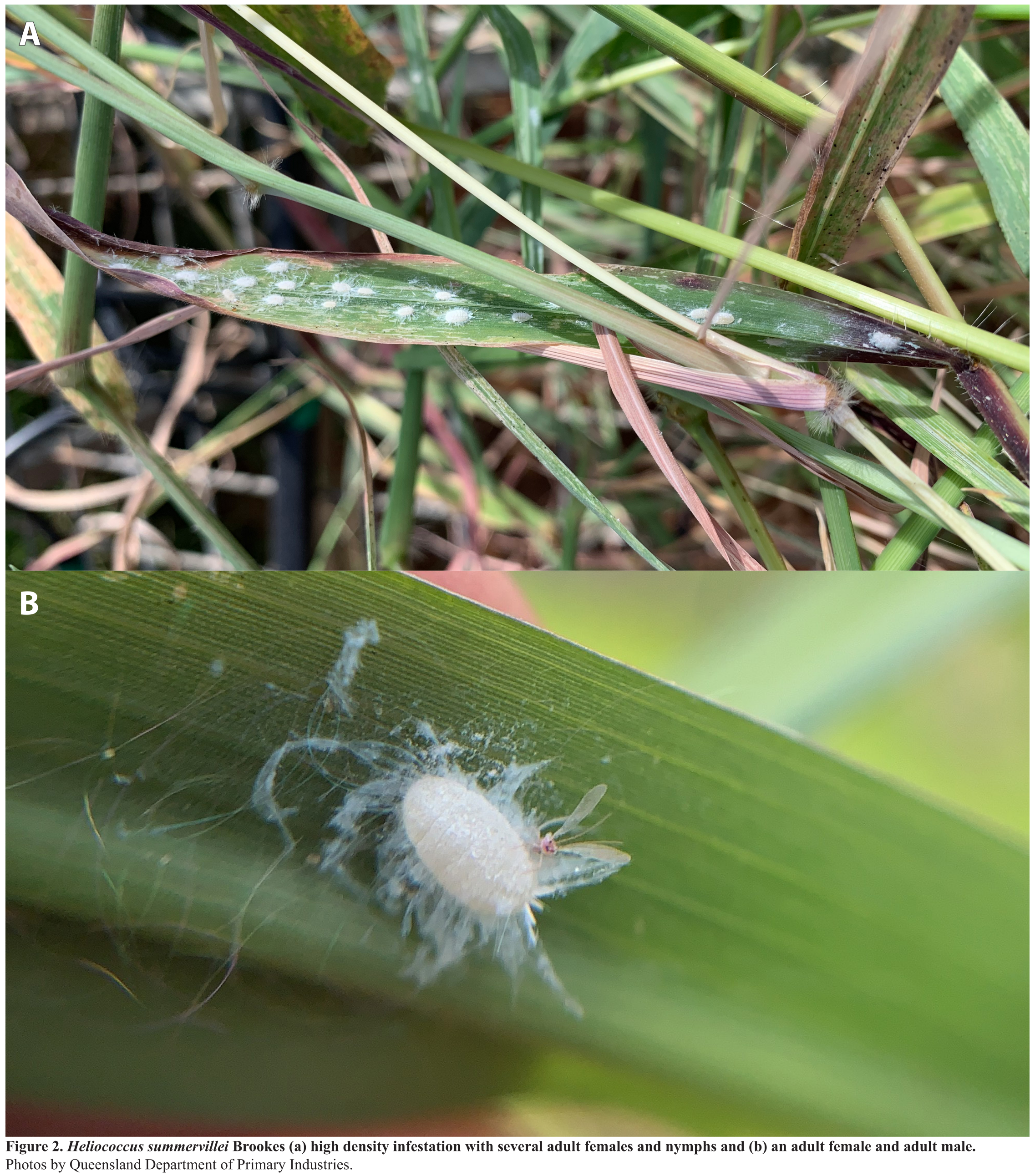 - Heliococcus summervillei Brookes 1978: 241. Type data: Holotype: AUSTRALIA: Queensland, on Paspalum dilatatum, and paratype females, PAKISTAN: Peshawar, on Saccharum officinarum. Holotype, female, Type depository: Canberra: Australian National Insect Collection, CSIRO Entomology, Australia; accepted valid name Illustr.