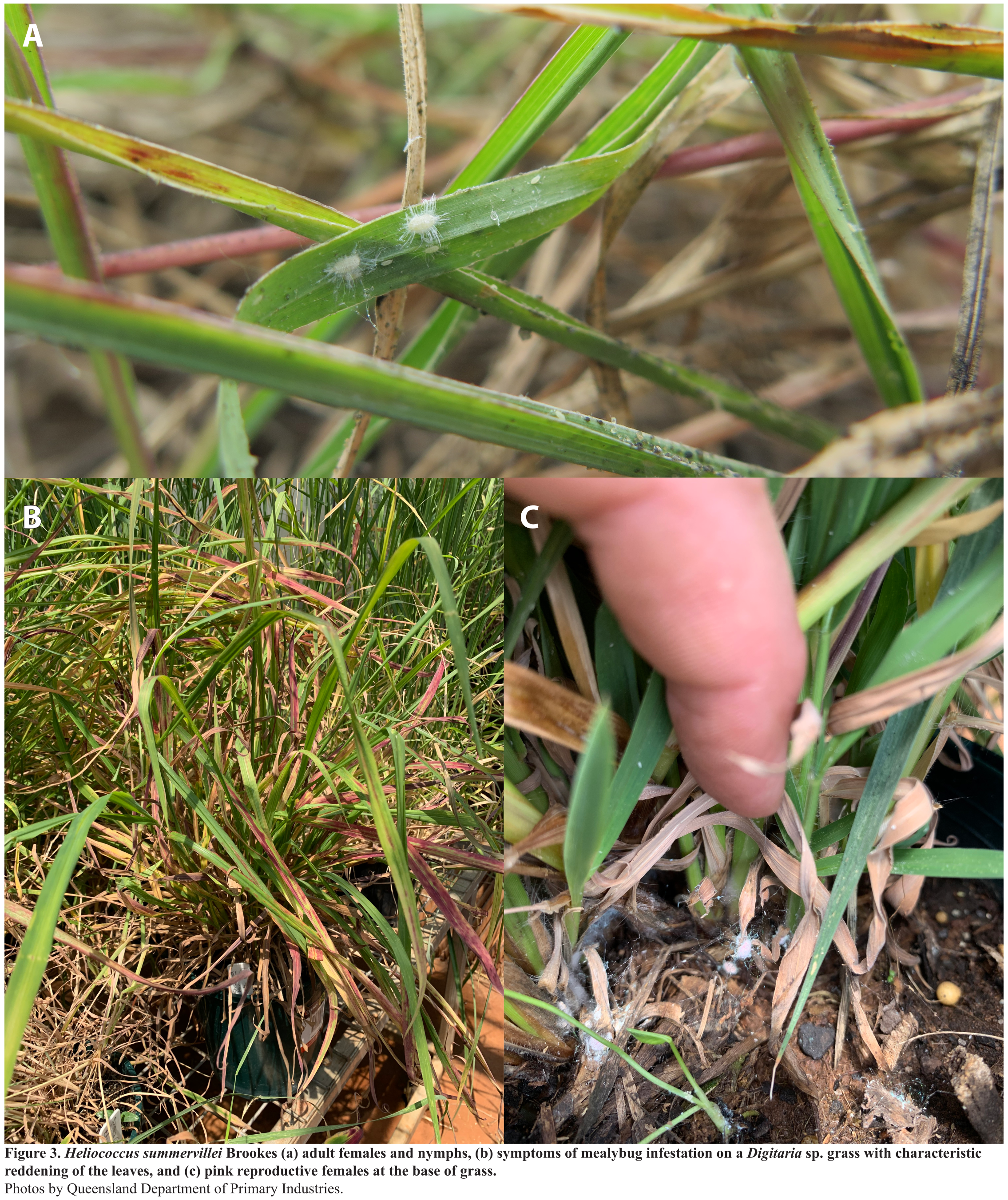 - Economic Importance: Summerville (1928) first reported on this species as "mealy bug" and presented observations on its economic importance, life history, control and natural enemies. Brinon et al. (2004) recorded this species from New Caledonia, reporting of severe damage to pasture grasses from 1998 to 2003. In 2003 the pest populations were almost completely redced, probably due to unexplaiend natural causes.